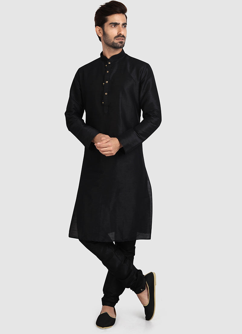 Black Art Silk Traditional Wear Plain Kurta Pajama