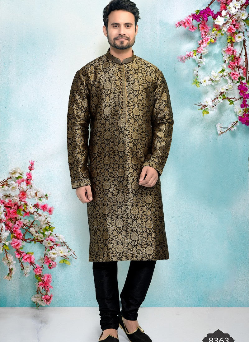 Black Jacquard Silk Brocade Festival Wear Weaving Kurta Pajama