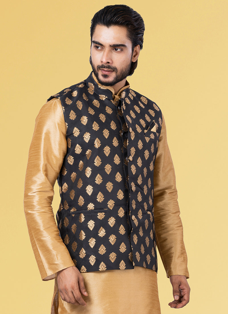 Black Jacquard Silk Party Wear Weaving Waistcoat