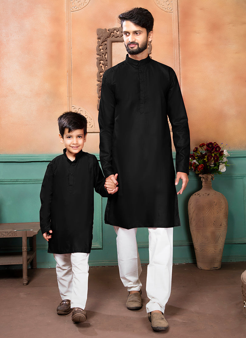 Black Pure Cotton Traditional Wear Plain Mens And Boys Kurta Kurta