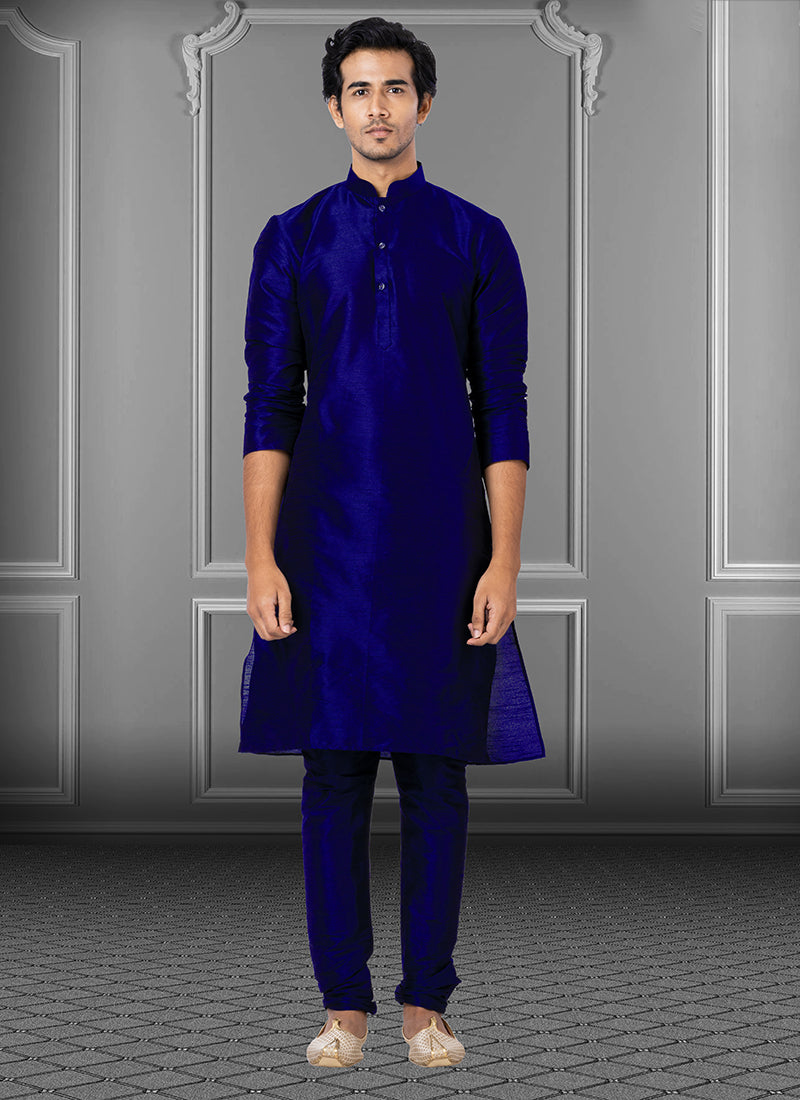 Blue Dhupion Silk Festival Wear Embroidery Work Kurta Pajama