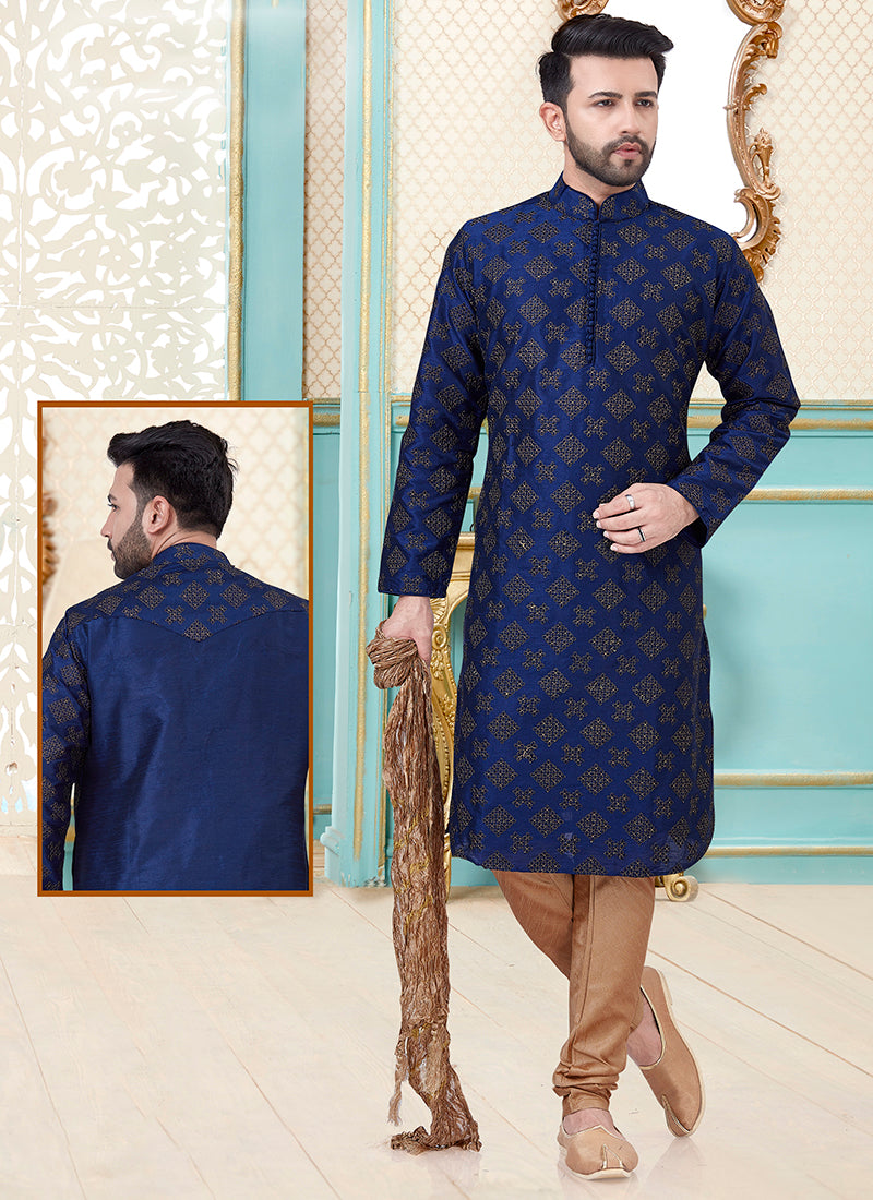 Blue Jaqurd silk brocade Party Wear Fancy Kurta Pajama