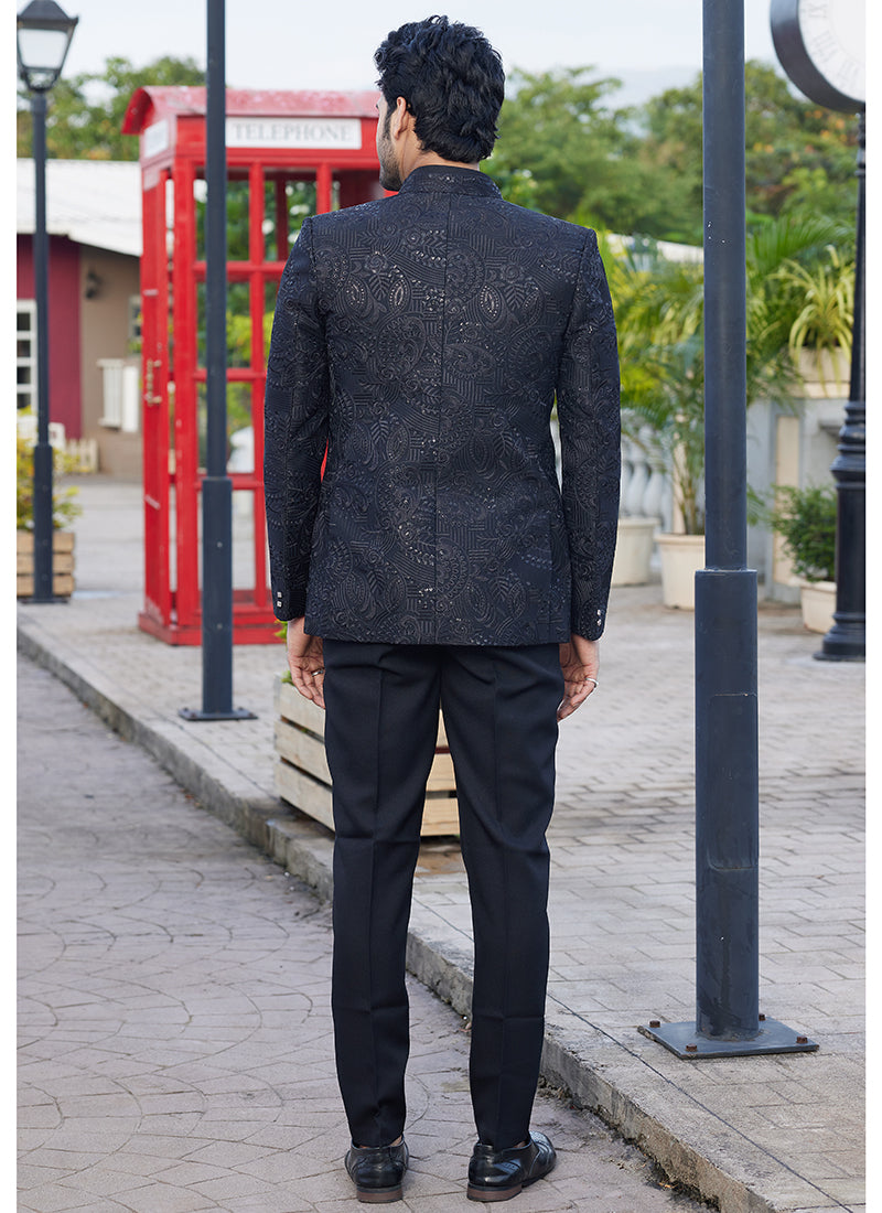 Art Silk Black Wedding Wear Thread Work Readymade Jodhpuri Suit(Top Only)
