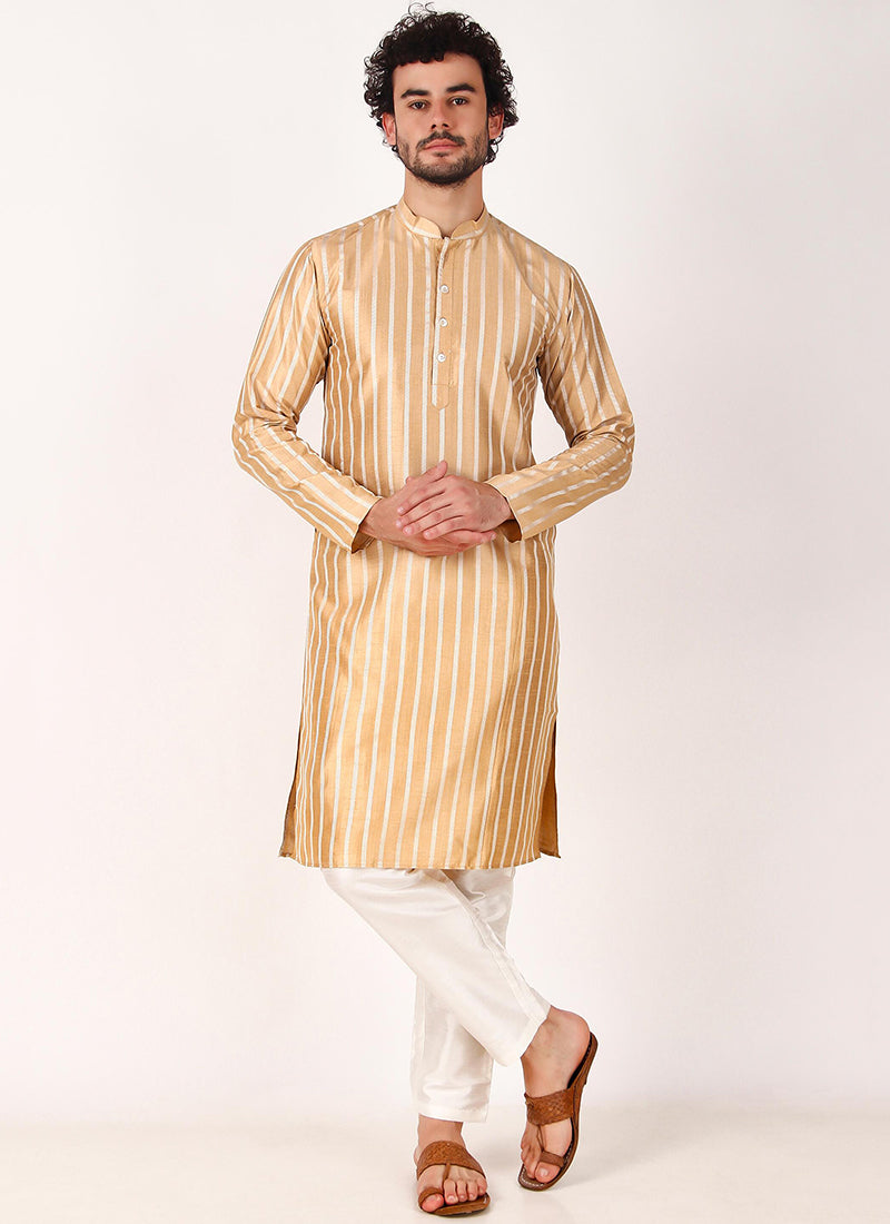 Art Silk Cream Festival Wear Plain Readymade Kurta Pajama