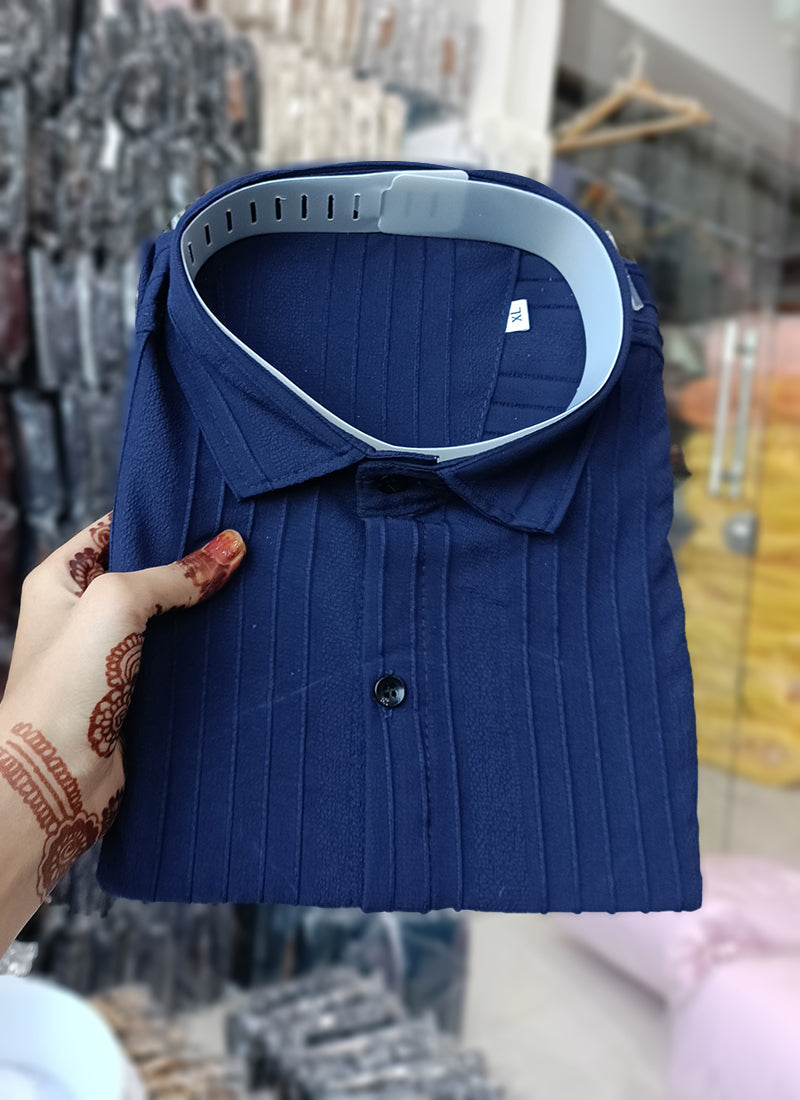 Dark Blue Popcorn Casual Wear Plain Mens Shirt