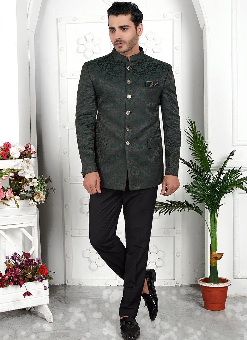 Dark Green Imported Jaquard Silk Party Wear Pattern Pc Work Readymade Mens Jacket
