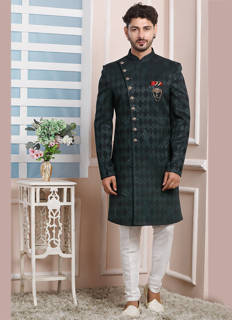 Dark green Valvet jaquard silk Wedding Wear Weaving Aligadhi pant Indo Western