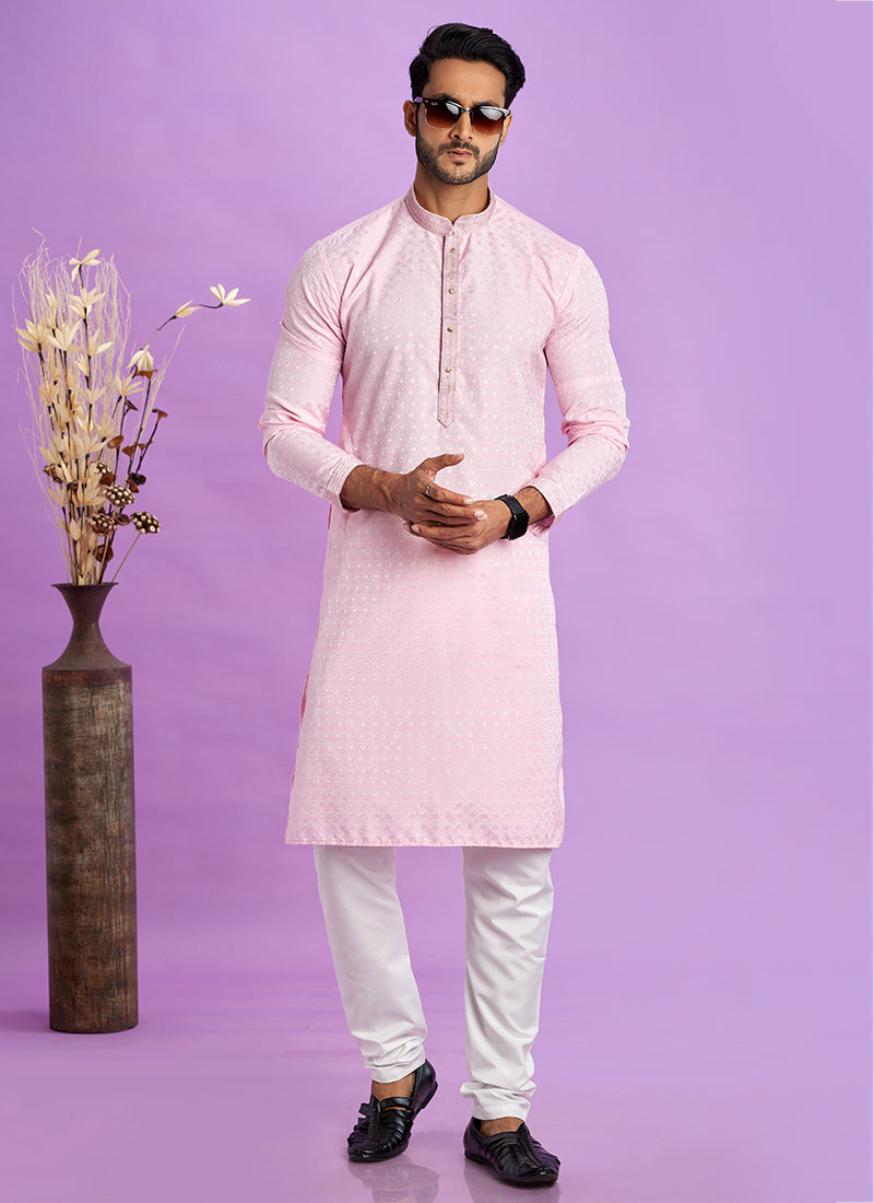 Art Silk Ice Pink Festival Wear Jacquard Kurta Pajama