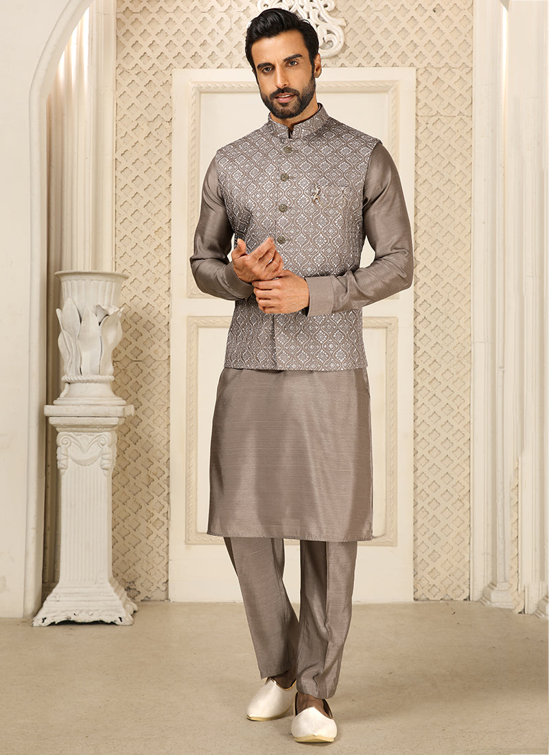 Banarasi Dhupion Grey Traditional Wear Weaving Kurta Pajama