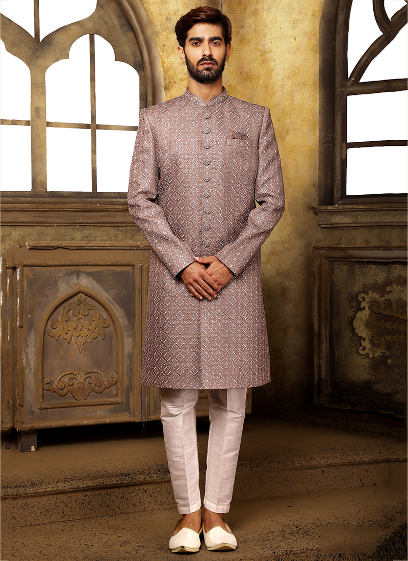 Ash Fancy Wedding Wear Weaving Nawabi Indo Western