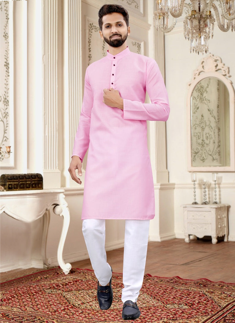 Baby Pink Cotton Festival Wear plain Kurta Pajaama