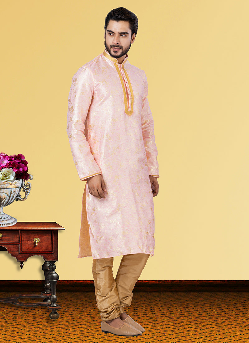 Baby Pink Linen Silk Festival Wear Weaving Kurta Pajama