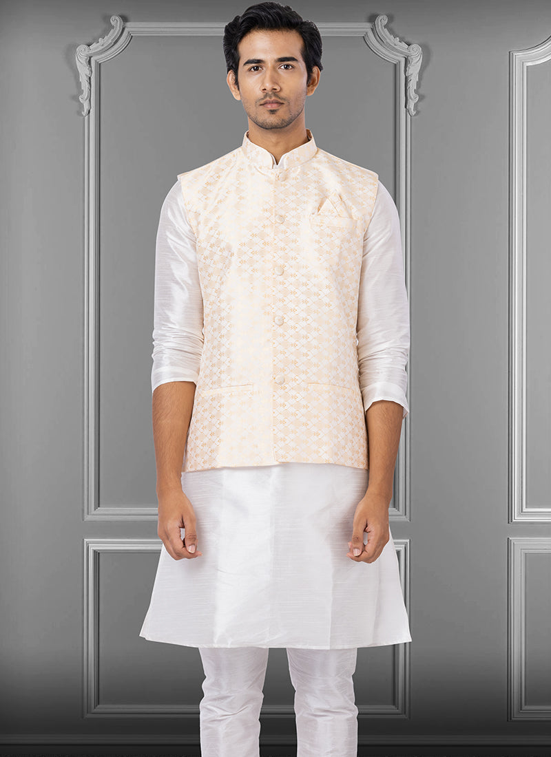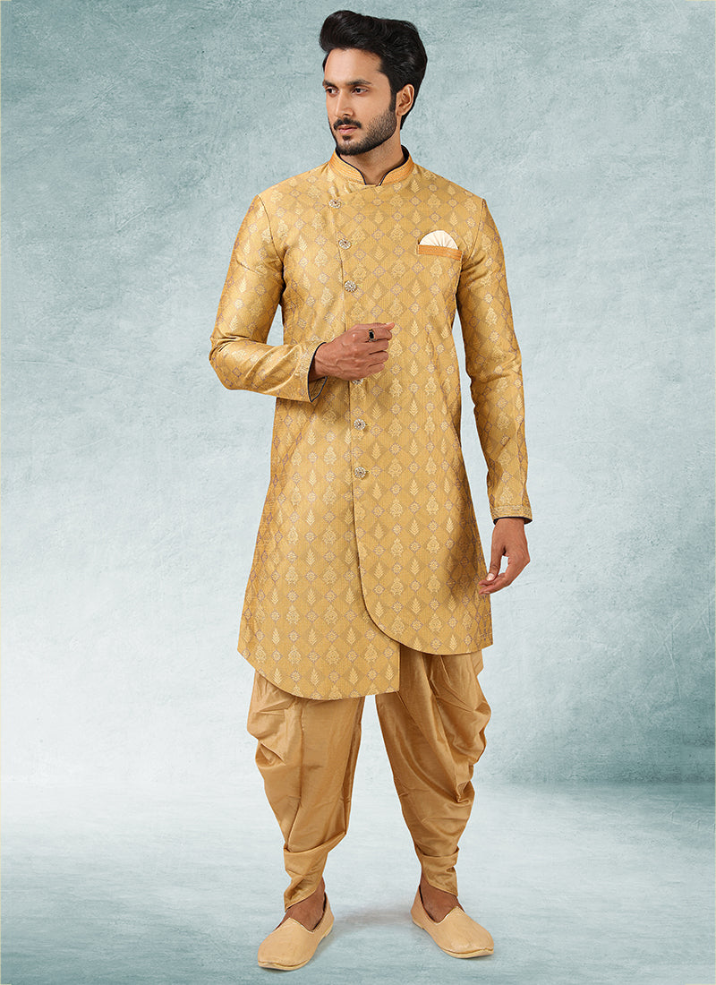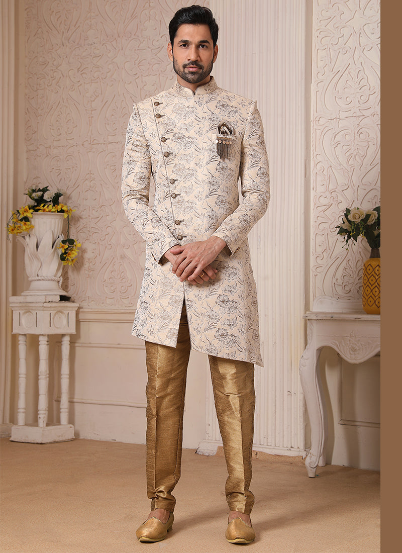 Baige Brocade Jacquard Traditional Wear Weaving Nawabi Indo Western
