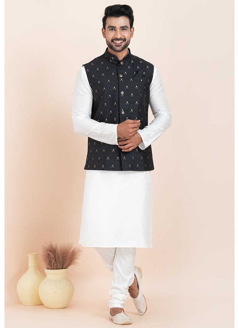 Banarasi Silk Black Festival Wear Jacquard Work Readymade Modi Jacket Kurta Pajama