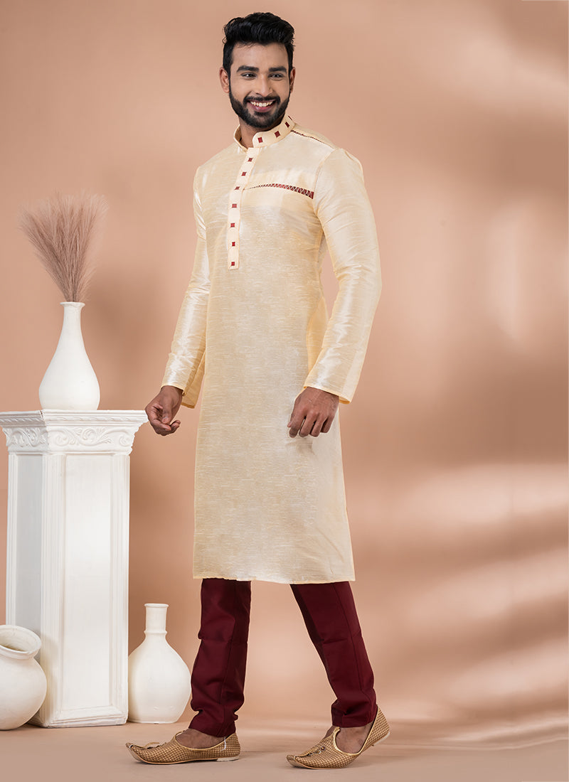 Banarasi Dhupion Silk Cream Festival Wear Weaving Kurta Pajama