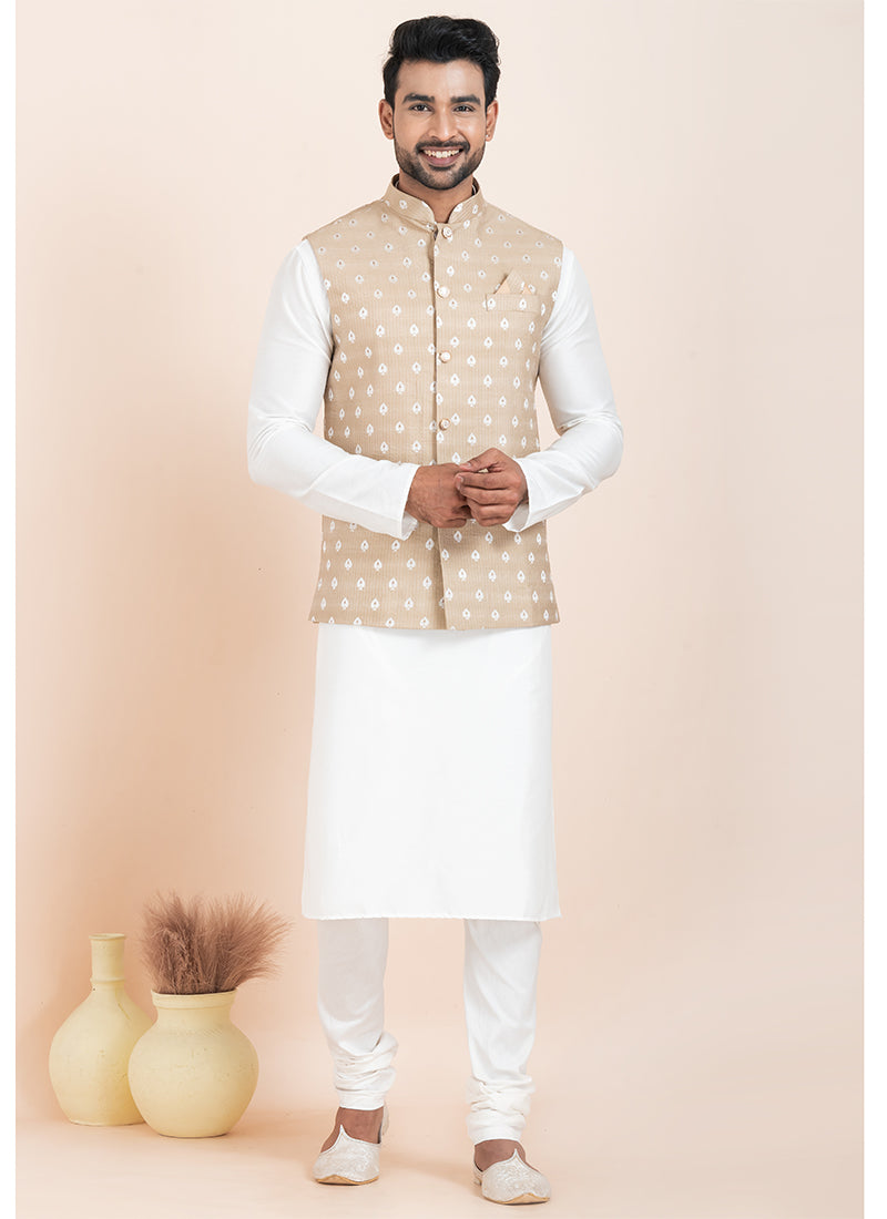 Banarasi Silk Light Brown Festival Wear Jacquard Work Readymade Modi Jacket Kurta Pajama