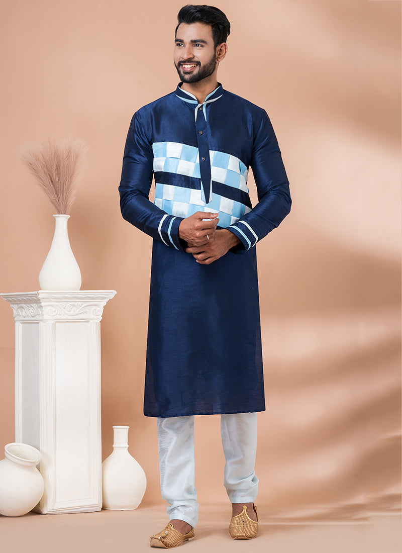 Banarasi Dhupion Silk Navy Blue Festival Wear Weaving Kurta Pajama