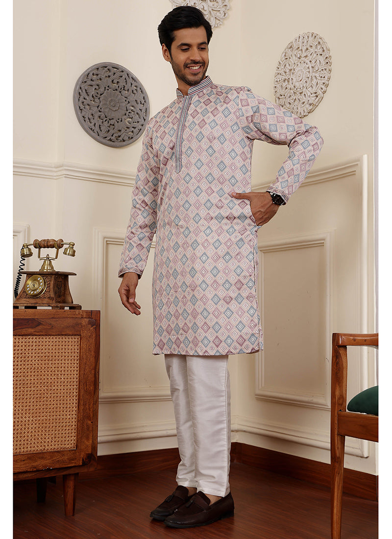 Viscose Cream Traditional Wear Weaving Readymade Kurta Pajama
