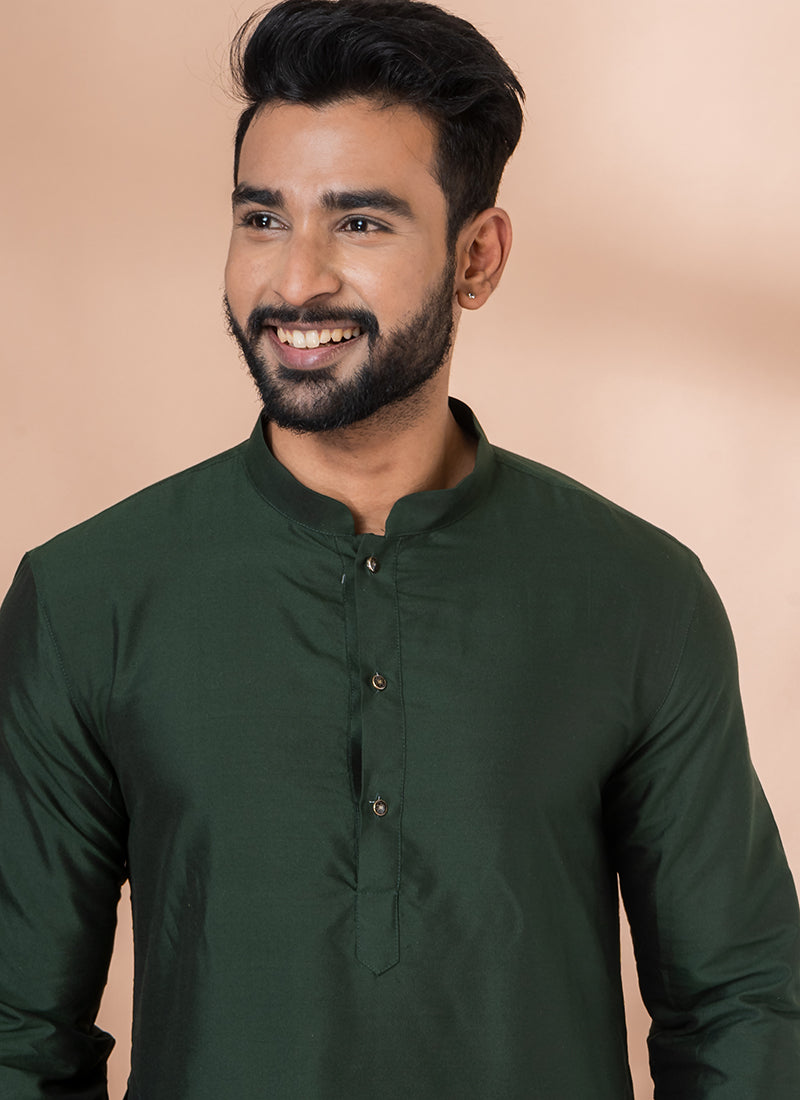 Viscose Green Traditional Wear Plain Kurta Pajama