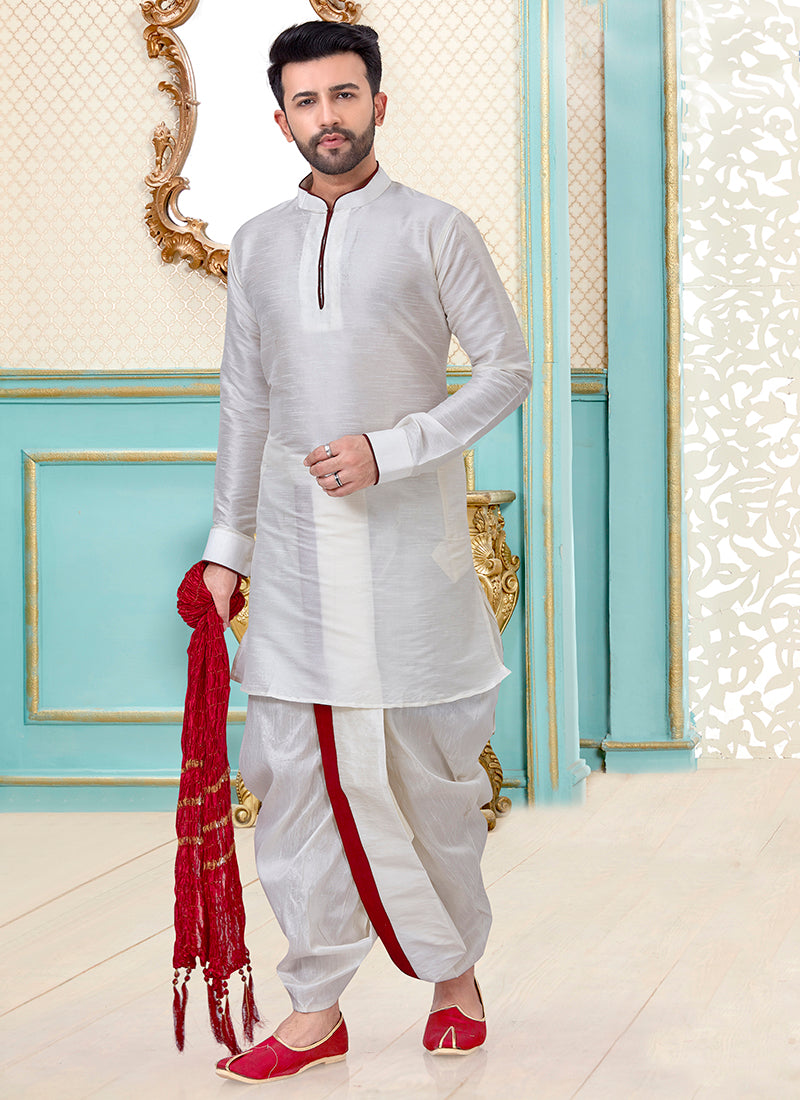 White Dhupion Silk Traditional Wear Plain Dhoti Kurta