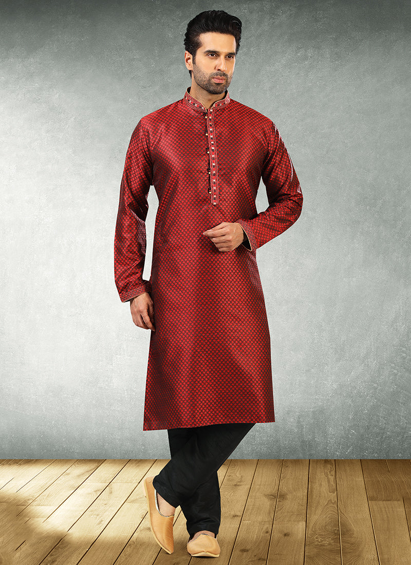 Wine Jaqurd silk brocade Party Wear Fancy Kurta Pajama
