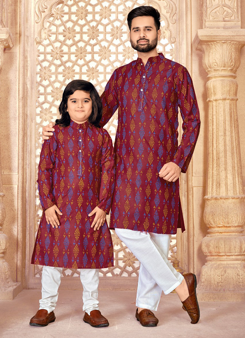 Wine Magic Cotton Casual Wear Printed Combo Kurta Pajama