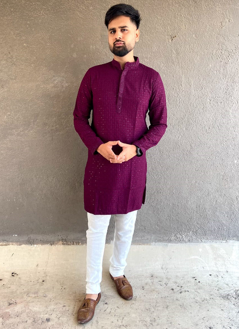 Wine Rayon Tradional Wear Chikan Work Kurta Pajama