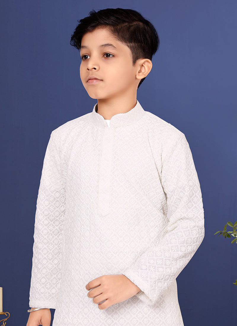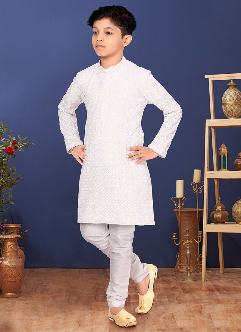 Georgette White Wedding Wear Weaving Readymade Kurta Pajama