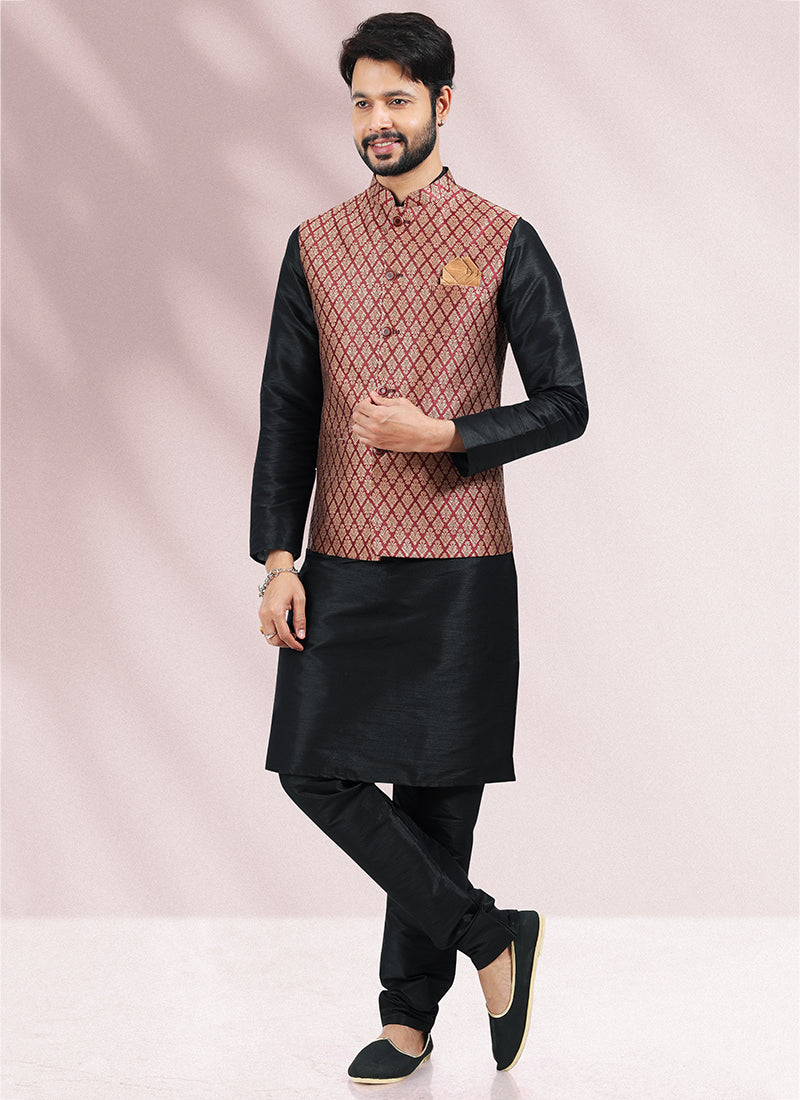 Product Speciality: Discover elegance and tradition with this beautifully crafted sherwani, perfect for weddings, festivals, and special occasions. Made from high-quality banarasi silk, this ensemble features intricate jacquard that reflects timeless style.