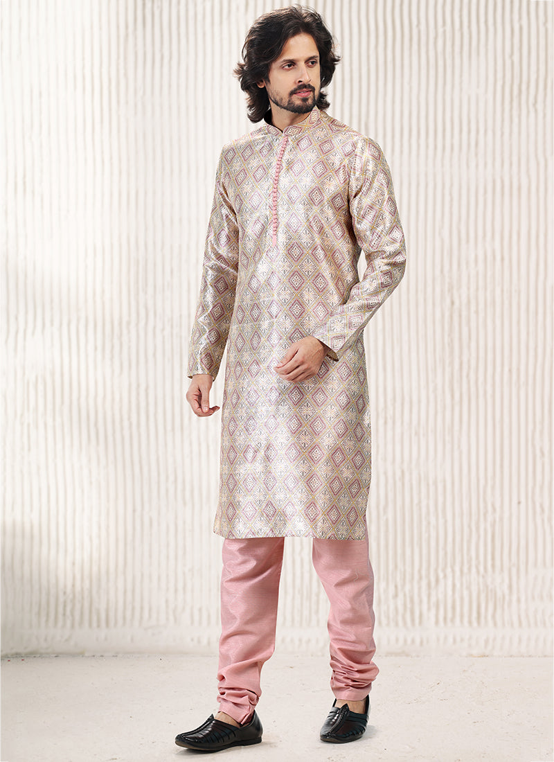Product Speciality: Discover elegance and tradition with this beautifully crafted sherwani, perfect for weddings, festivals, and special occasions. Made from high-quality banarasi silk, this ensemble features intricate jacquard that reflects timeless style.
