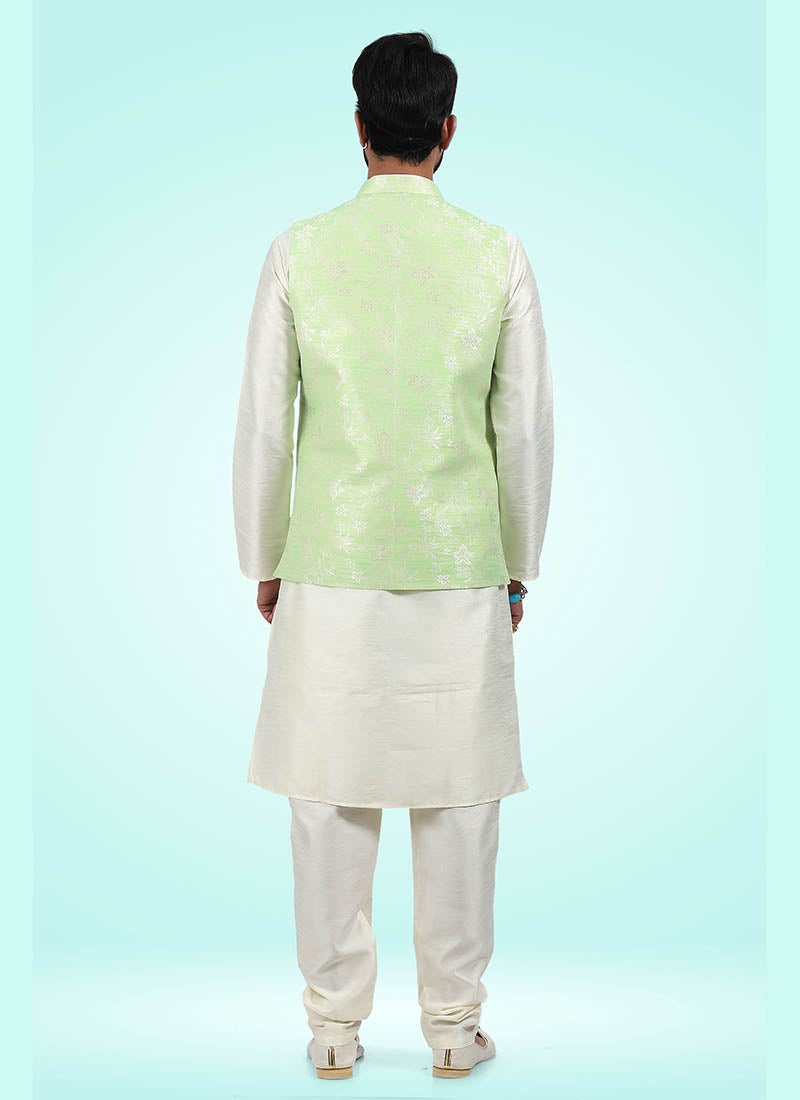 Pista green Banarasi Silk Traditional Wear Jacquard Kurta Pajama With Jacket