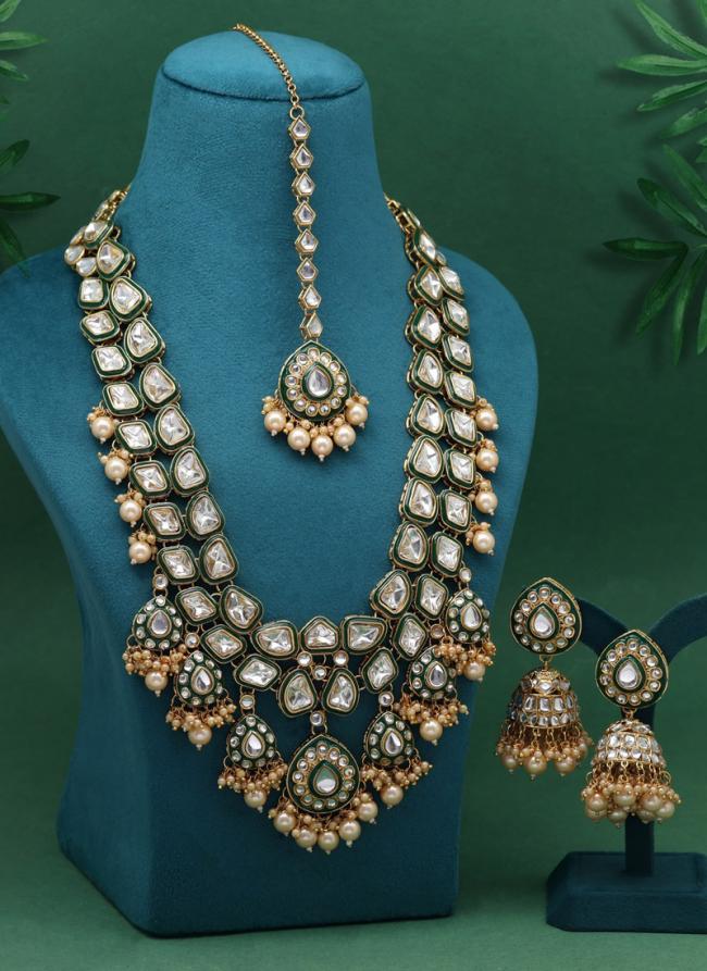 Wedding Wear Sea Green Heavy Polki Kundan With Pearl Drops Necklace Set