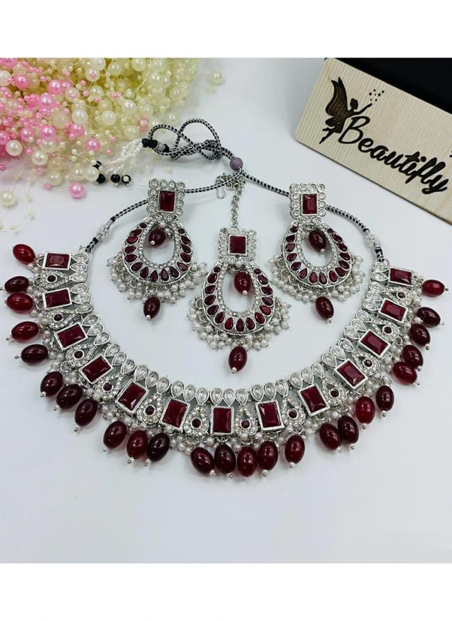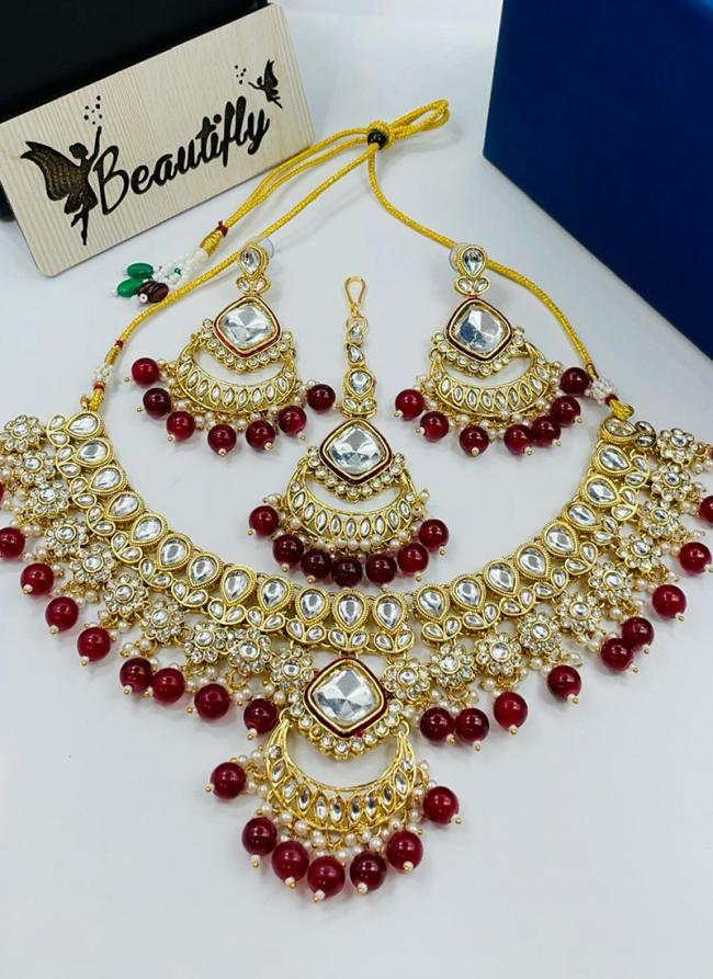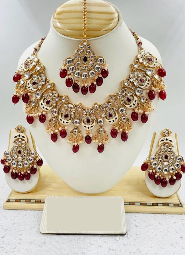 Wedding Wear Maroon Color Kundan Choker Necklace Set