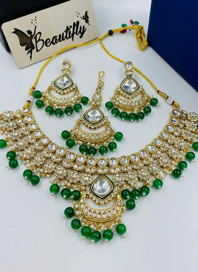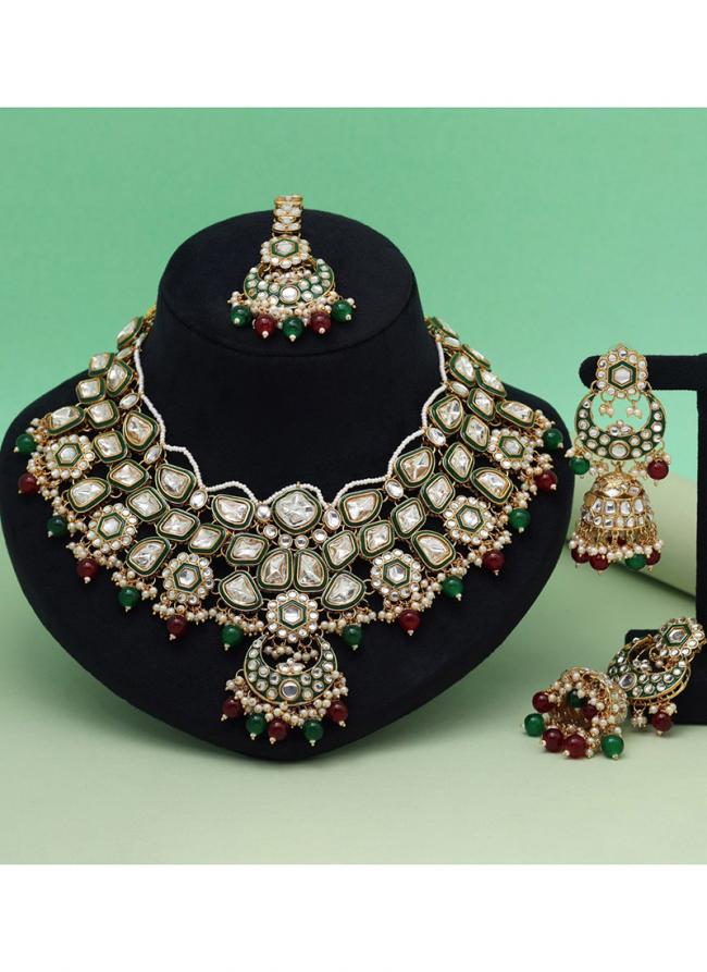 Wedding Wear Green Color Kundan Choker Necklace Set