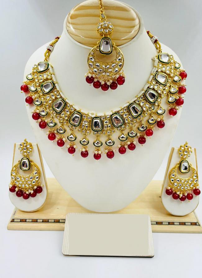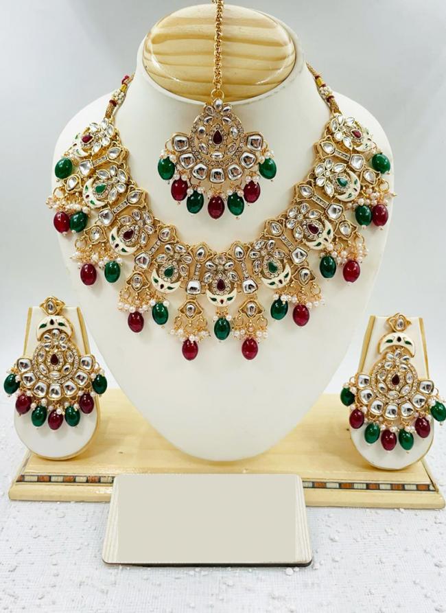 Bridal Wear Maroon & Green Color Meena Work Kundan Necklace Set