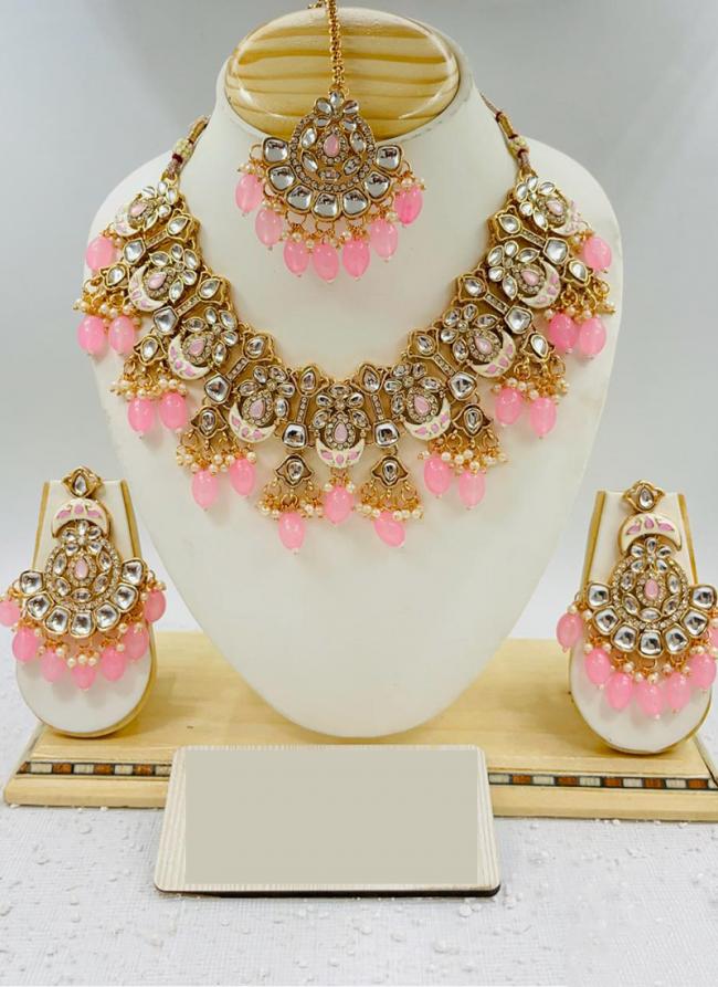 Wedding Wear Pink Color Kundan Choker Necklace Set