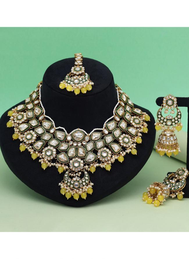 Bridal Wear Yellow Color Meena Work Kundan Necklace Set