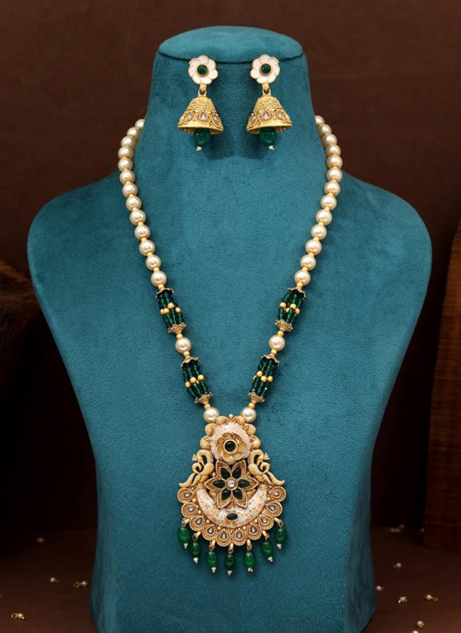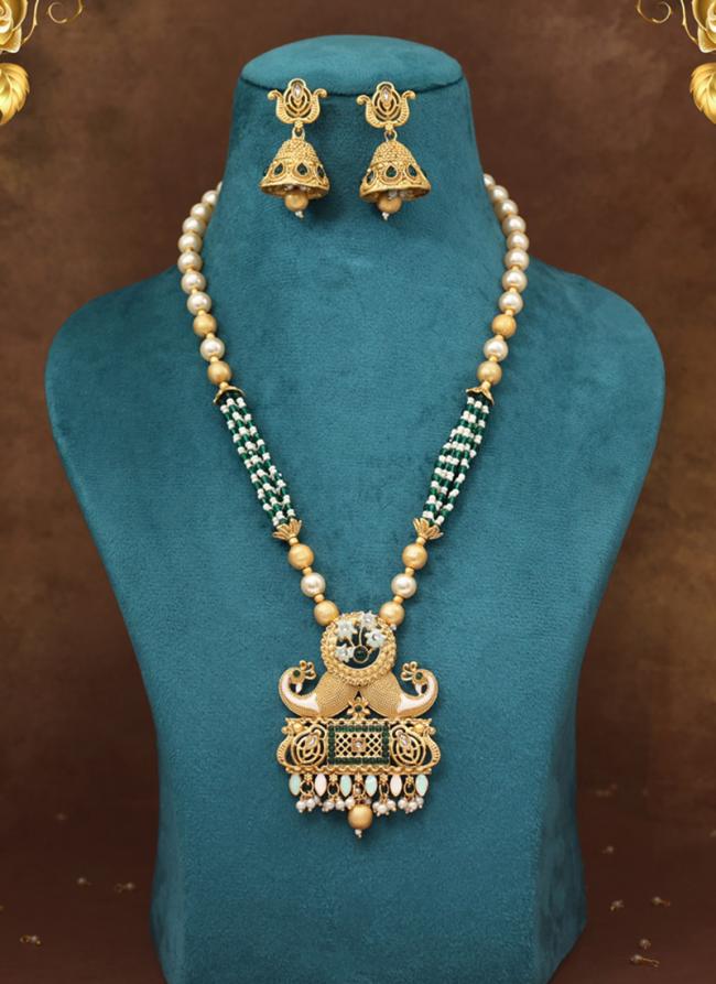 Festival Wear Green Color Meena Work Matte Gold Rajwadi Temple Necklace Set
