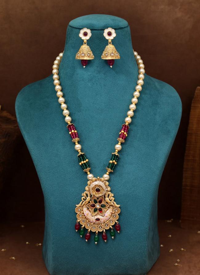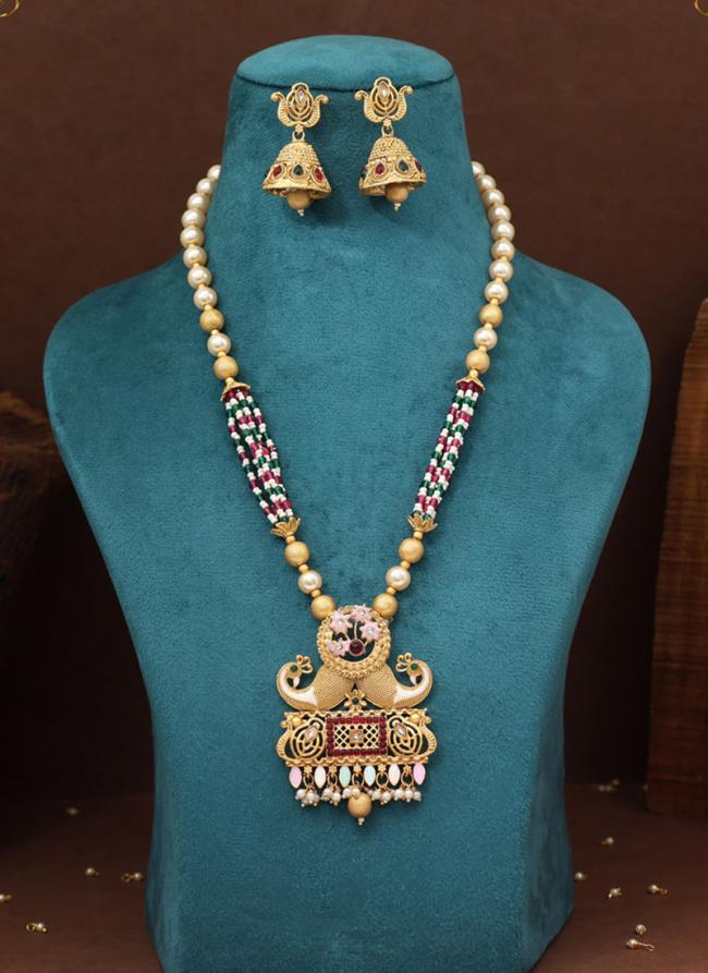 Festival Wear Rani & Green Color Meena Work Matte Gold Rajwadi Temple Necklace Set