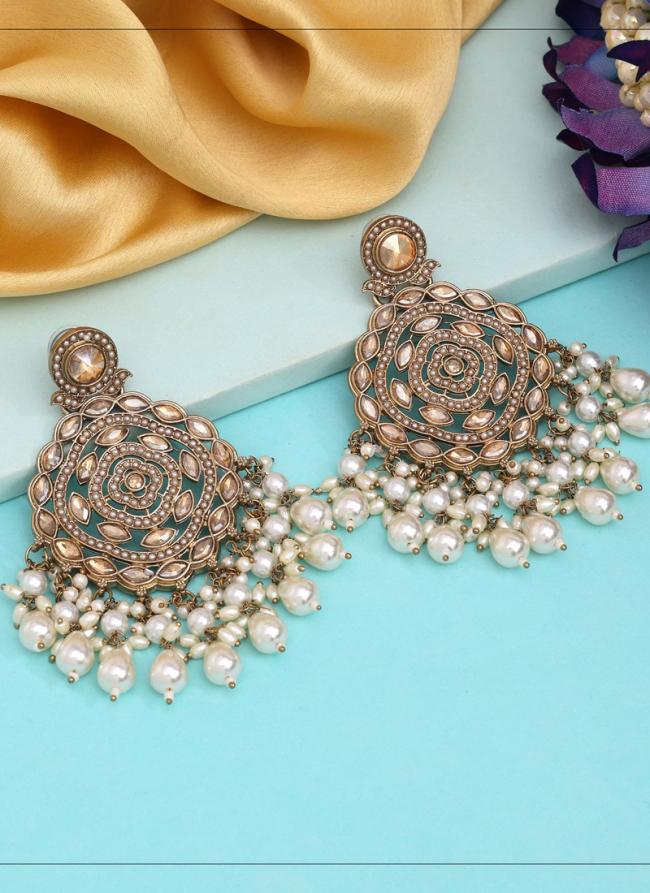 Wedding Wear Gold Color Pakistani Kundan Earrings