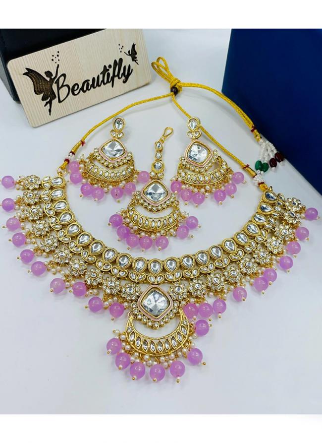 Wedding Wear Light Purple Color Kundan Choker Necklace Set