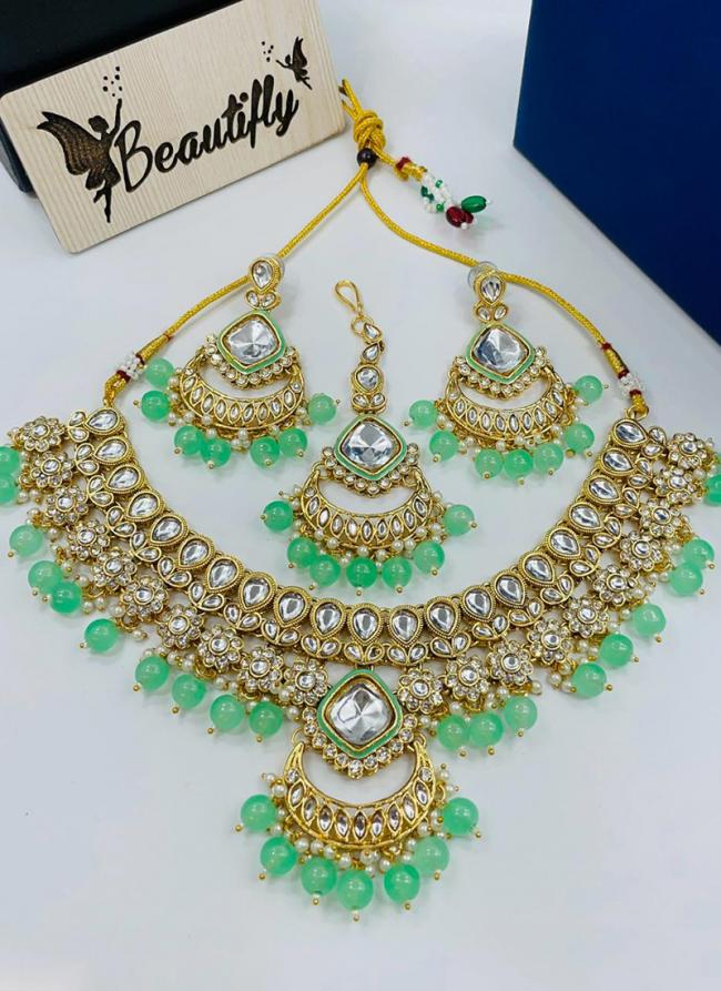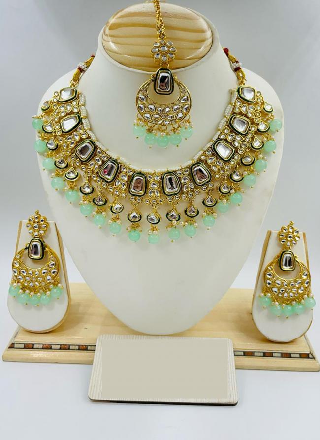 Wedding Wear Sea Green Color Kundan Choker Necklace Set