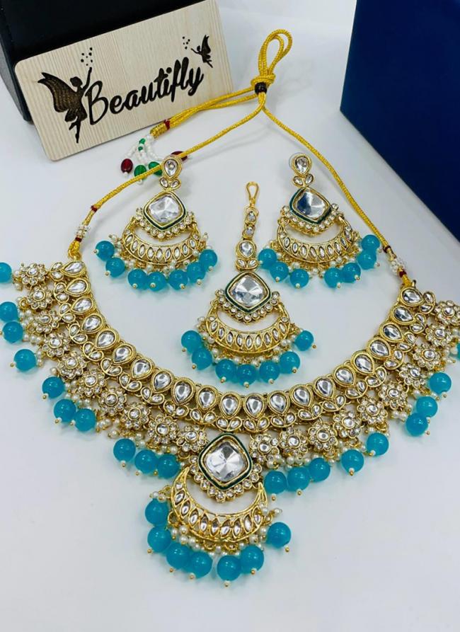 Wedding Wear Sky Blue Color Kundan Choker Necklace Set