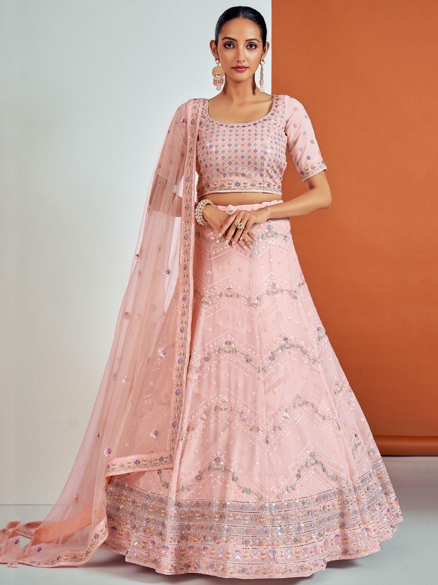 Product Speciality: Introducing our attractive peach sequins georgette lehenga choli with net dupatta, the perfect ensemble for any wedding, cocktail/reception, marriage, or festival occasion. This stunning lehenga is semi-stitched up to 42 inches and comes with fully unstitched choli material.