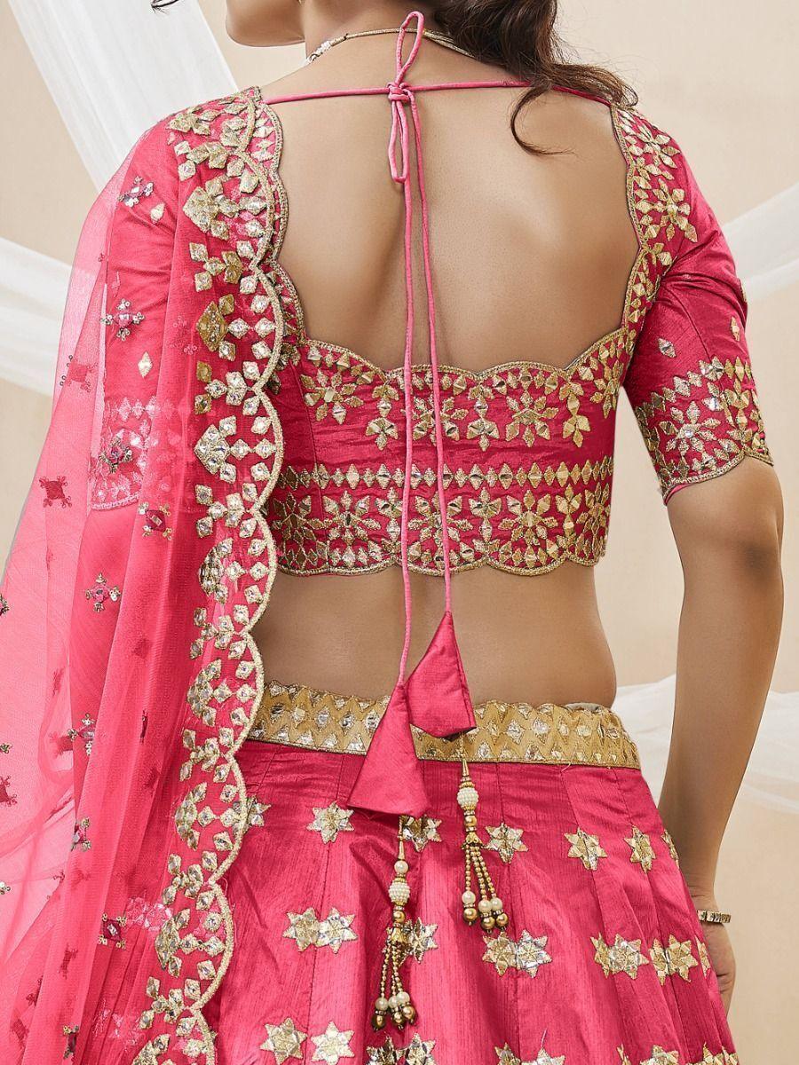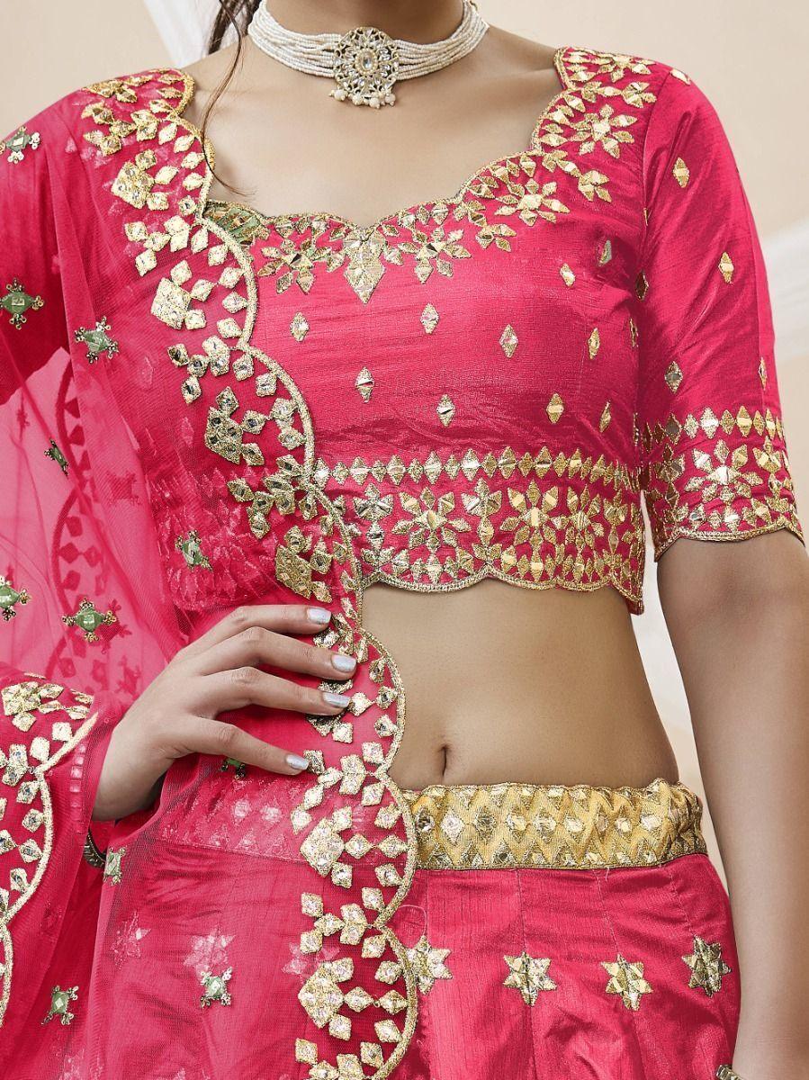 Product Speciality: Introducing the charismatic pink zari work art silk engagement wear lehenga choli! This stunning pink lehenga is the perfect choice for weddings and receptions, offering a captivating design and exquisite craftsmanship.