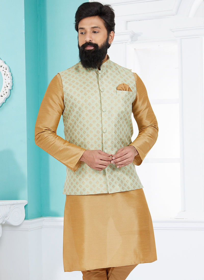 Banarasi Dhupion Pista Wedding Wear Banarasi Work Mens Waist Coat