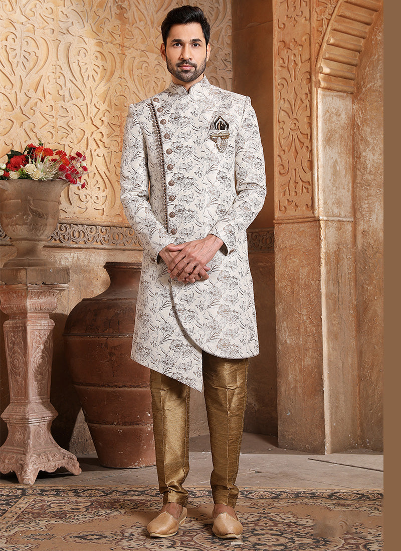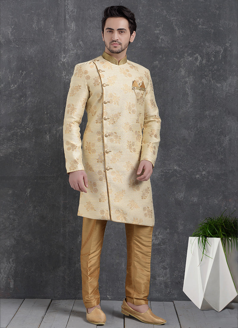 Baige Brocade Jacquard Traditional Wear Weaving Nawabi Indo Western
