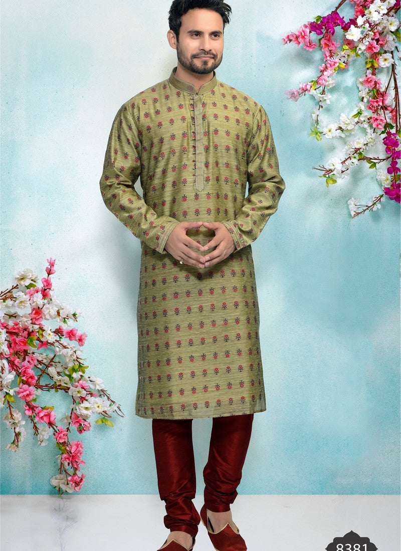 Green Brocade Silk Jacquard Festival Wear Weaving Kurta Pajama