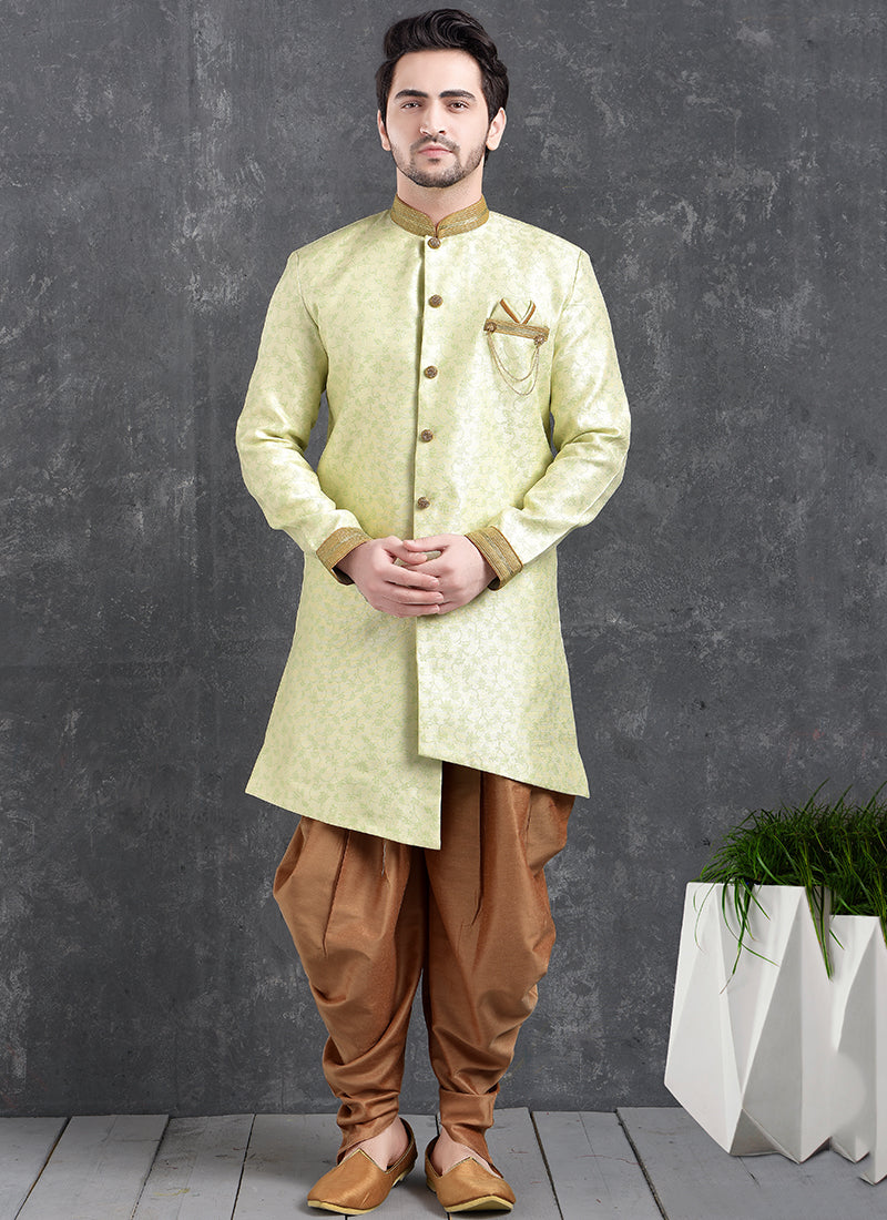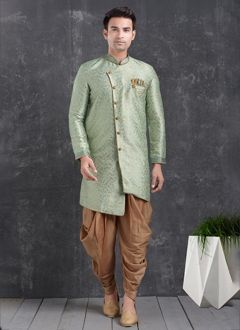 Light green Jaqurd Silk Brocade Festival Wear Pintux Peshawari Indo Western