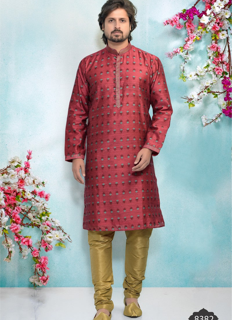 Magenta Jacquard Silk Brocade Festival Wear Weaving Kurta Pajama
